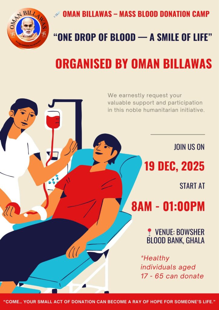 ಒಂದು ಸಮಯದಲ್ಲಿ ಓಮಾನ್ ನಲ್ಲಿ ರಕ್ತದಾನ ಶಿಬಿರಗಳು ಹೆಚ್ಚಾಗಿ ಭಾರತೀಯ ಸಾಮಾಜಿಕ ಸಂಸ್ಥೆಗಳ ಮೂಲಕ ಅಥವಾ ಕೆಲವು ಕಂಪನಿಗಳ ಸಹಕಾರದಿಂದ ನಡೆಯುತ್ತಿದ್ದವು. ಆ ದಿನಗಳಲ್ಲಿ ಕರ್ನಾಟಕದ ಕಡೆಯಿಂದ, ವಿಶೇಷವಾಗಿ ಸಮುದಾಯಿಕವಾಗಿ ಇಂತಹ ಶಿಬಿರಗಳು ಹೆಚ್ಚಾಗಿ ನಡೆಯುತ್ತಿರಲಿಲ್ಲ. ಆದರೆ 2017ರಲ್ಲಿ ನಮ್ಮ ಬಿಲ್ಲವ ಬಂಧುಗಳು ಒಂದಾಗಿ ಮೊದಲ ಬಾರಿಗೆ ರಕ್ತದಾನ ಶಿಬಿರವನ್ನು ಆಯೋಜಿಸಿ, ಸುಮಾರು 65 ಜನರು ರಕ್ತದಾನ ಮಾಡುವ ಮೂಲಕ ಜೀವ ಉಳಿಸುವ ಕಾರ್ಯಕ್ಕೆ ಭದ್ರವಾದ ಚಾಲನೆ ನೀಡಿದರು.